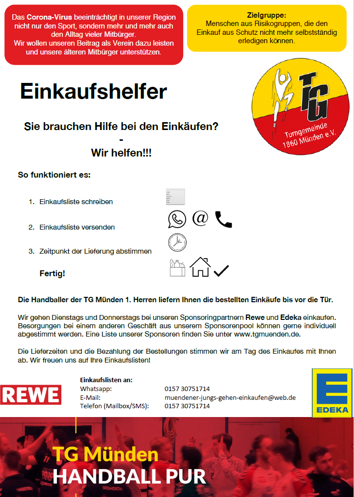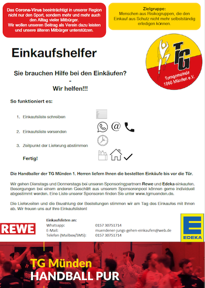 Die Handballer der TG Münden 1. Herren liefern Ihnen die bestellten Einkäufe bis vor die Tür.